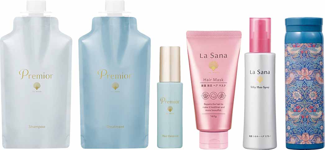 ベスコスの常連『プレミオール』と『海藻 海泥』シリーズを試せるシャンプー・トリートメント・ヘアエッセンス・ヘアマスク・ヘアスプレーのセット。
