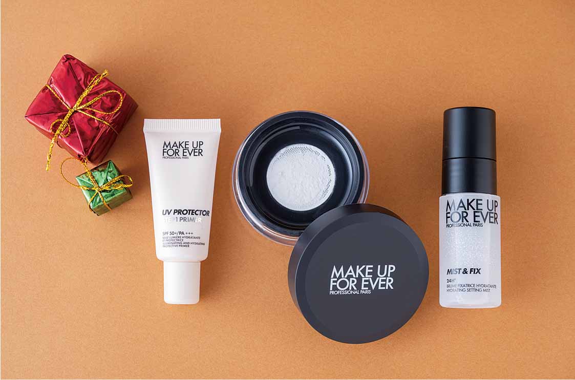 今回のコフレには、さらに日焼け止めベースとフィックスミストのミニサイズがセットに。