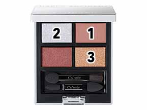 アイシャドウは、1を二重幅に薄く広げたあと、2を上まぶたの中央に入れて輝きをオン。