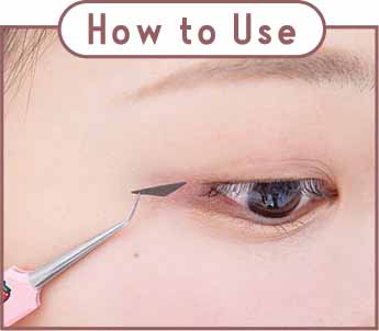 眼を傷つけないよう注意しながら、ピンセットでアイラインテープを目尻へ。