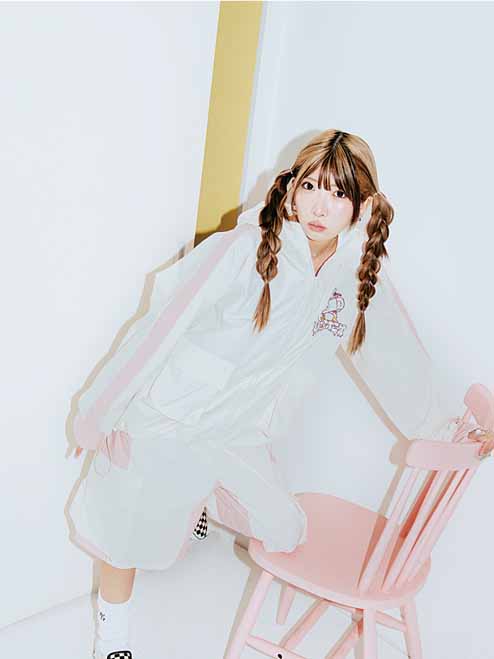 パーカー ¥15,400、ハーフパンツ ¥13,200、ベスト ¥17,600、ルーズソックス ¥2,728(全て参考価格)、その他まあたそ私物